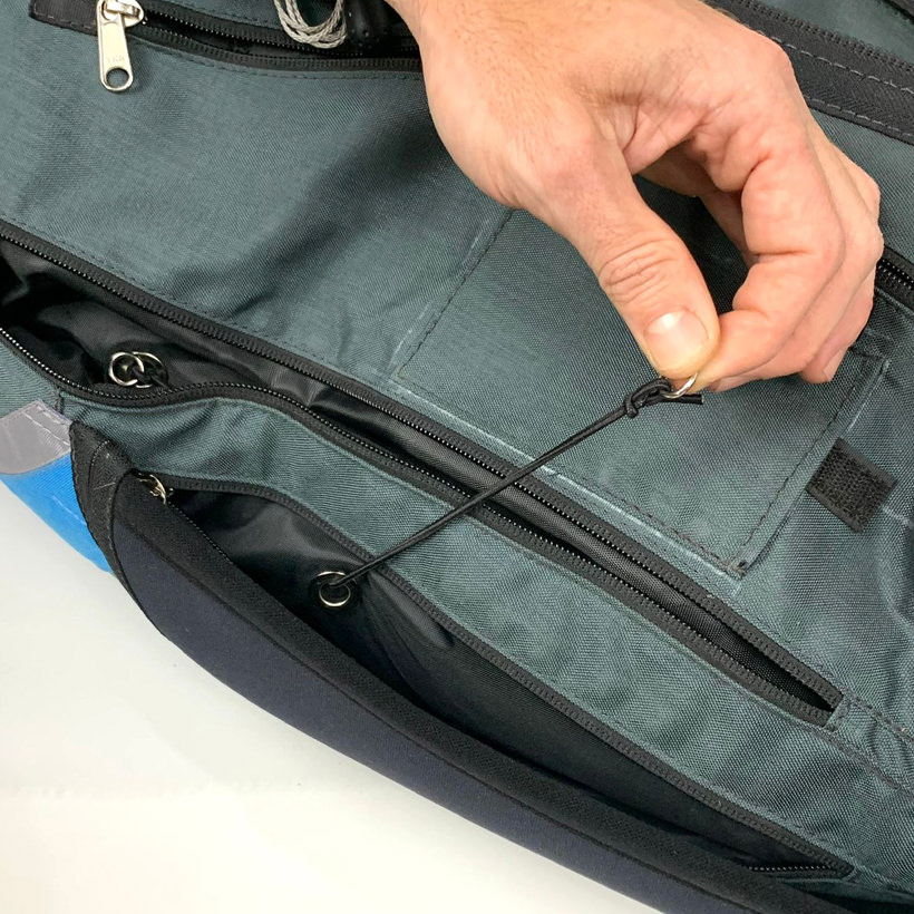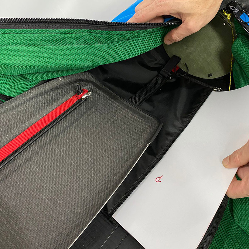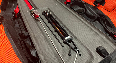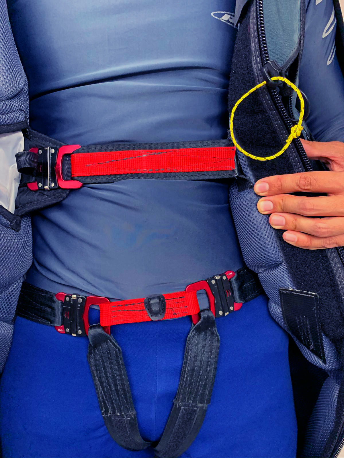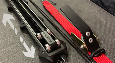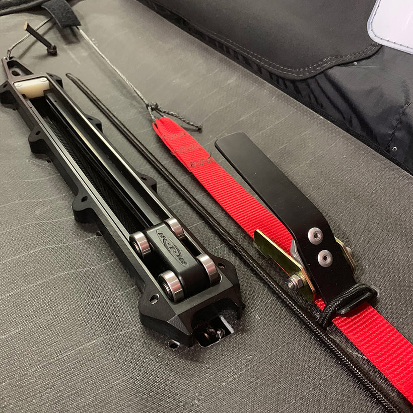 Os rolamentos ficam travados em quatro cavidades usinadas no trilho principal, mantendo o piloto no centro de gravidade perfeito, como conseqüência o sistema “Kick ass” funciona com maior precisão permitindo que o piloto altere sua angulação durante vôo sem desconforto. O trilho com 25 cm de curso e quatro rolamentos que deslizam sobre a base de alumínio permite mudança de posição rápida e precisa em um ângulo vertical excelente para o pouso.